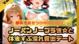 ふわふわ名人が提供する【野外で見せつけ中出し放題!!ノーパンノーブラ彼女と体液ずぶ濡れ露出デート】の同人エロ画像。品番は【d_698395】